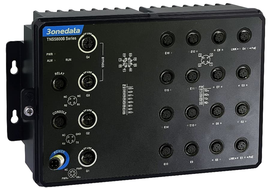 Complies with ITxPTSupport power ignition, support power delay-offSupport 16 100M PoE M12 interfaces and 4 gigabit M12 interfaces (with 1 pair of Bypass function)Adopt Ring patented technology, support single ring, coupling ring, chain, Dual-homing functionSupport 24VDC (12~31.2VDC) power supply inputSupport IP67 protection grade Support -40~75°C wide operating temperature range