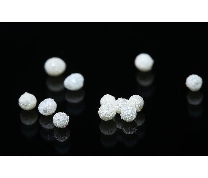 Glass beads combined and covered by non-transparent micron beads. Excellent optical design provides superior retro-reflectivity in dry and wet conditions. Reasonable structure design, high compressive strength, good flowability improves uniformity of drop-on and good adhesion with various paint. Long reflective distance, and various reflective colors.