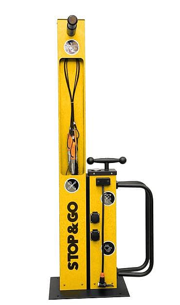 Equipped with bike tools and tyre pump with universal connector, and with 2 Schuko E-Bike sockets. . MADE FROM anti-corrosion anodised aluminium. STAINLESS STEEL BOLTS. TOOL SET: 1 cross-head screwdriver; 1 flathead screwdriver; 1 adjustable spanner 0-22mm; 2 tyre levers; 1 x 15 mm spanner + 1 x 13 mm spanner; 1 set of Allen keys 2.5-10 mm. POSSIBILITY OF INSTALLING FROM 1 TO 4 SIDE BIKE RACKS TO PARK BICYCLES (USEFUL DURING BIKE CHARGING AND TIRE INFLATION).