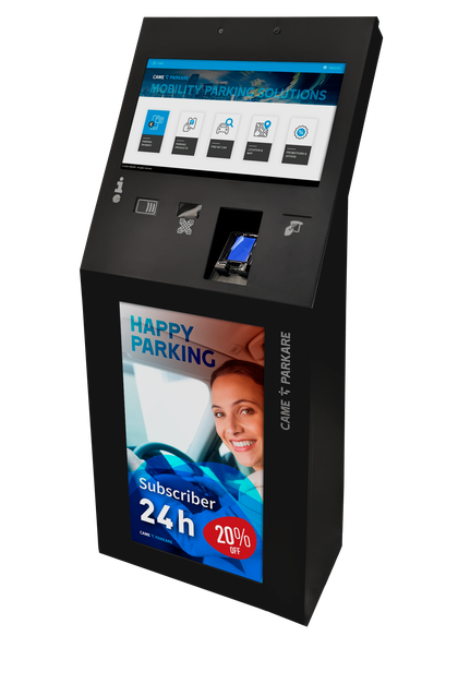 Designed to operate online, CAME Parkare's Multi-Function Kiosk adapts to the specific needs of each client, offering a simple, efficient, and versatile user experience. By leveraging cutting-edge technology, it integrates the latest innovations in electronic payment methods through both physical and virtual tickets (ticketless systems), ensuring an agile, secure and hassle-free user experience. It accepts secure and fast electronic payments through credit cards with chip and/or proximity (NFC).