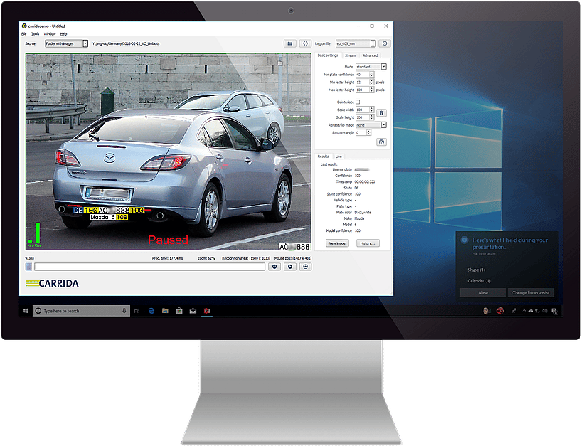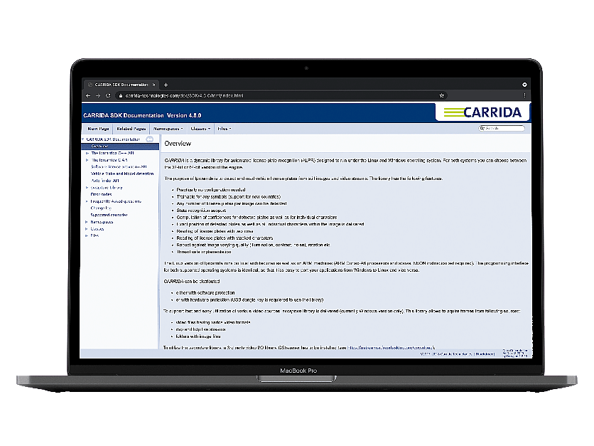 CARRIDA is a flexible software library for Automated License Plate Recognition (ALPR) in images. It detects and reads vehicle number plates from still images and video streams with highest performance and an accuracy of more then 99 percent. For perfect integration with numerous applications you can choose from three versions of the software engine.