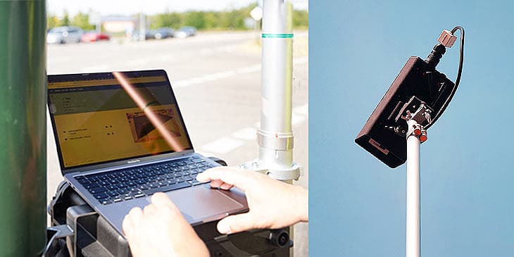 Mobile traffic object analysis system with artificial intelligence and computer vision. For use at traffic hubs (records turning behaviour including vehicle classification), at roundabouts (records origin/destination traffic survey including vehicle classification), or on multi-lane roads (records vehicle volume, classification, and speed). The ARGOS Portable AI traffic object analyzer can classify 10 types of vehicles, from bicycles to semi-trailers.