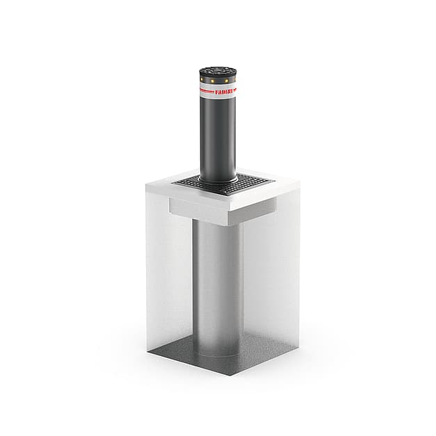 Recommended to control access to residential areas and also in commercial and industrial applications. Hydraulic locking device in standing position (standard) and emergency manual lowering by a release spanner supplied with the equipment. Solenoid valve (as an option) for automatic lowering in case of power failure. Hall effect limit switch sensors, head with rubber edge, LED lights (optional). Vast range of command and safety accessories