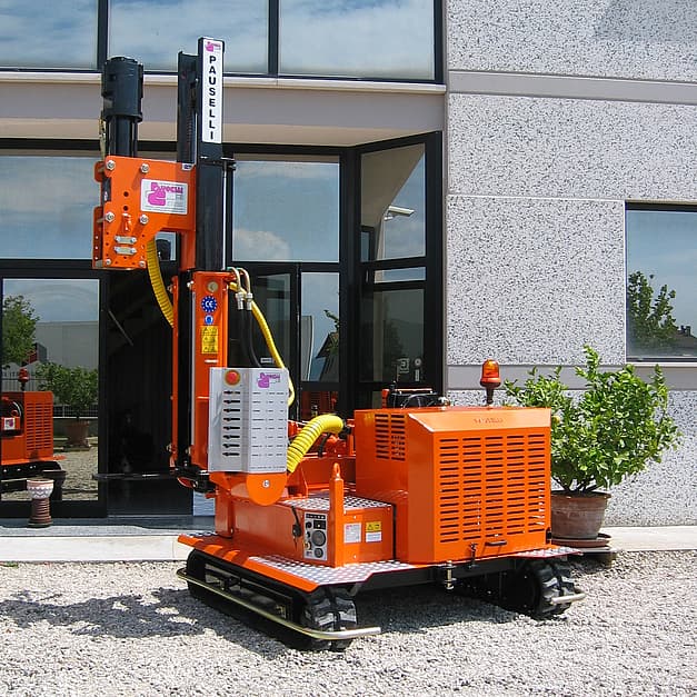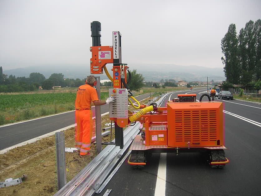 Pile driver model 700 is stable, compact and quick in its movement. It is specially designed for road safety barriers, wooden piles and photovoltaic structures installation.
