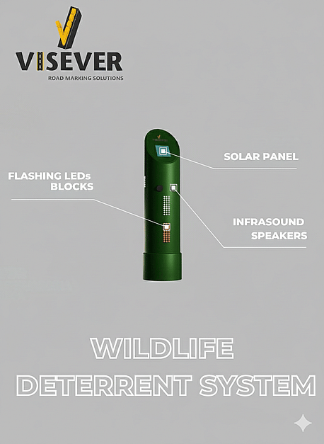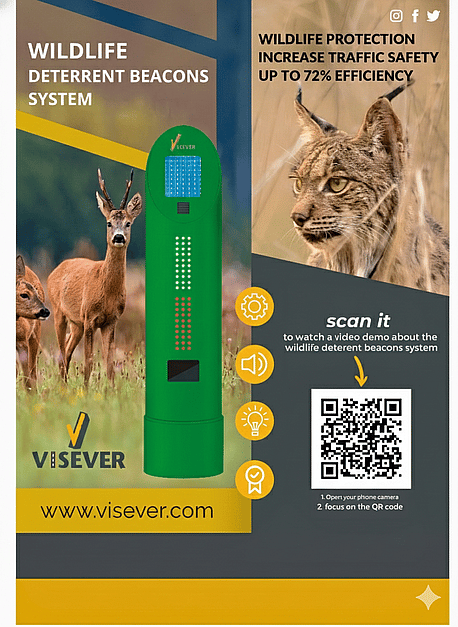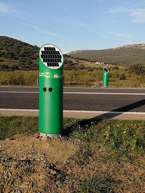 Our Intelligent Wildlife Alert (IWA) system comprises a group of interconnected beacons installed on each side of road platforms that detect animal movements and activate infrasonic and light alerts only when cars are nearby, reducing the possibilities of collisions and accidents. Designed for installation in 500-meter sections at conventional roads' hotspots where wildlife collisions are frequent. Self-powered by solar panels and with low maintenance costs.