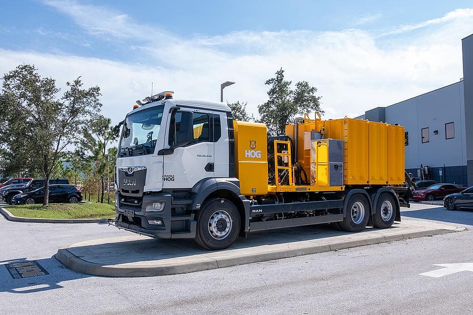 The Rumble Hog is a 3-in-1 machine that can Grind pavement markings, Groove pavement for inlaid markings, and cut Rumble Strips. The Rumble Hog uses 1" (2.5 cm) diamond-tipped teeth for longer durability and higher efficiency. The Rumble Hog has the option to be fitted with a Scissor Lift High Dump for easy dumping of debris. The Rumble Hog can Grind and cut Rumble Strips up to 5 mph (8 kpm). It can Groove up to 3.5 mph (5.6 kpm).