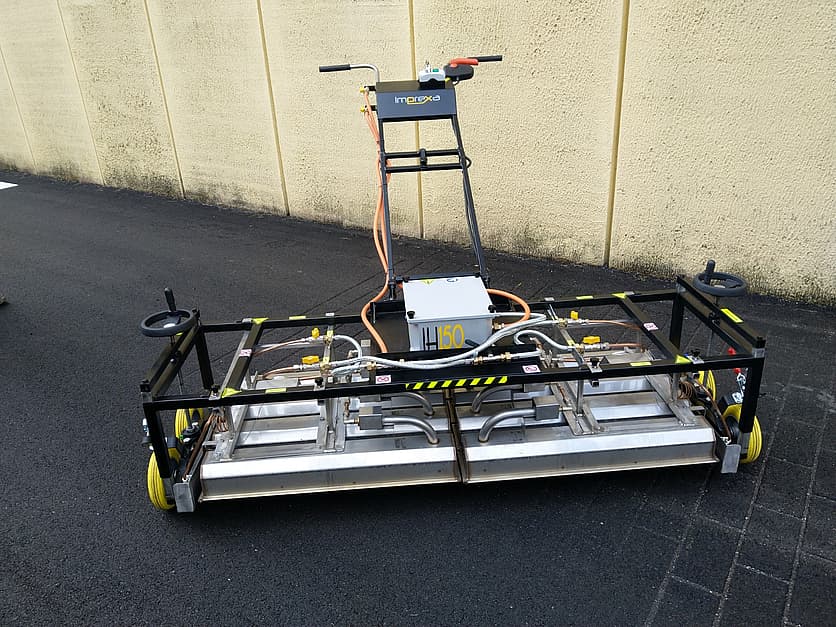 HI150 is the new infrared heater made from IMPREXA. The machine has been designed for stamped asphalt applications: big manouvrability, easy transportation, high heating performance , safe control toghether with an a-ordable cost. The best choice available for stamped asphalt contractors. Weight: kg 85