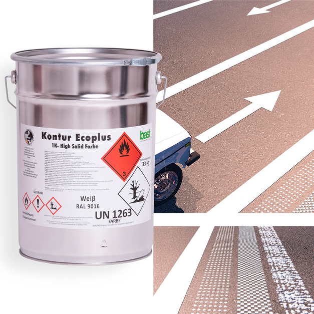 The paint is made on the basis of acrylic resins. The composition of the paint guarantees its long life, quick drying as well as bright and steady whiteness. KONTUR paint is a well-adhering product that has a high color strength and abrasion resistance. Paint is available also in yellow, red, blue and black color. KONTUR paint is intended to perform all types of thin-film horizontal road markings, squares, parking lots and other road and communication services with asphalt or concrete surfaces.