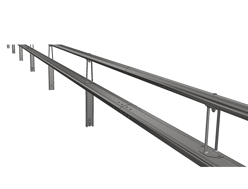 Nordic M H1 GC – Safety barrier with M profile and GC addon fixed at C110 post (cc 3.0 m) installed in steel foundation(400 / 800 mm) or with base plate.