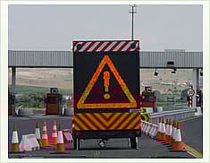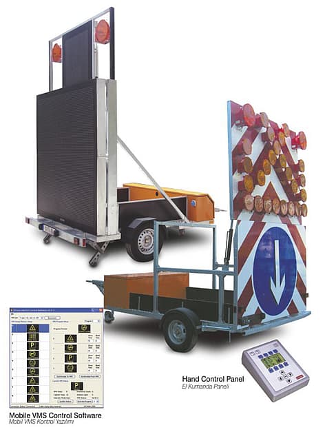 Mobile Variable Message Signs extends the advantages of stationary Variable Message Signs to all points on a motorway. It also has ability to work as a Variable Trafic Sign or Speed Warning System with Radar. Mobil VMSs, mounted on a specially designed trailer, have ability to allow either local or remote control and management functions via GSM modems.