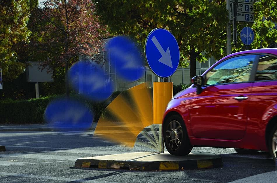 Robinson90 is a premium flexible traffic sign post designed to withstand repeated vehicle impacts and return to its original position without damage. Thanks to the patented spring system Augustaflex®, maintenance and replacement costs are drastically reduced. Certified according to EN 12899-1, it is ideal for urban roads, cycle paths, parking areas.