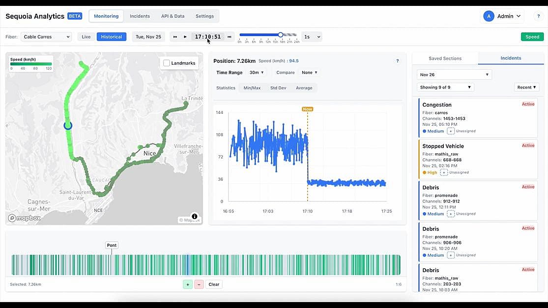 Metric precision at scale. Monitor speed, counting and incidents over hundreds of km in real-time with surgical accuracy. Eliminate blind spots using existing assets with a low TCO. Turn your road into a live intelligence grid with zero digging and road installation devices.