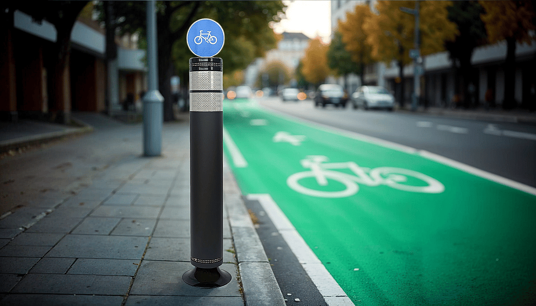SERNIS flexible bollards with bicycle signage are designed to improve safety and organization on cycle paths.
